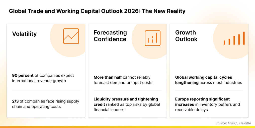 As the global economy moves into 2026, volatility has reached its highest level in more than a decade. Supply chain costs continue to rise, and two thirds of companies report increased operational pressure. Across Europe, businesses are carrying heavier working capital cycles and absorbing longer cash conversion periods.